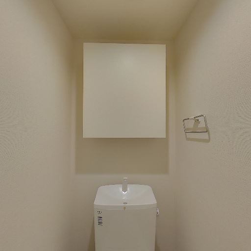 トイレ収納の充実(確度86%):タンク上部に大きめの吊戸棚があり、トイレットペーパーや掃除用品を十分にしまえそう。