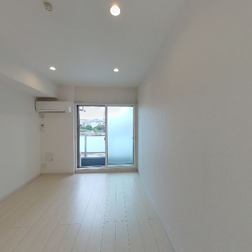 バルコニー付きの掃き出し窓(確度88%):奥に大きなガラス戸があり、その先に手すりが見えるためバルコニーがある。