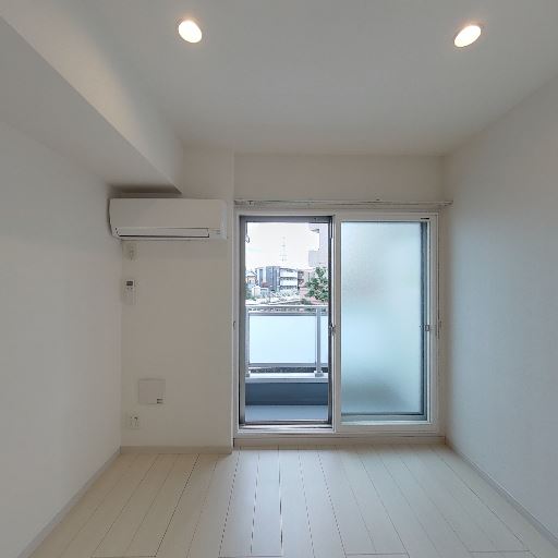 エアコン設置済み(確度95%):窓上部の左側に壁掛けエアコンが見える。