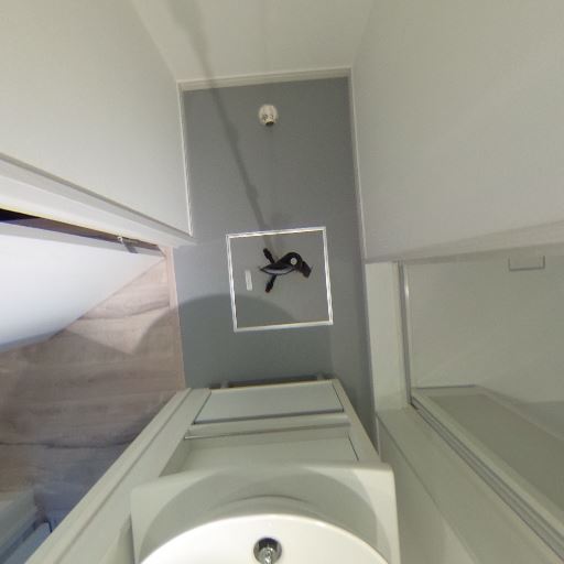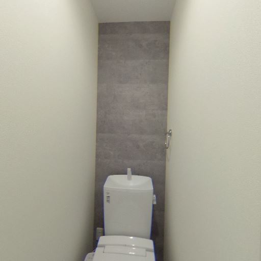 • トイレ空間である(確度95%):細長い個室にタンク付き便器が設置されている。壁の一面はグレー系のアクセント壁。