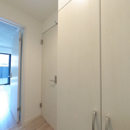 • 玄関スペースに収納あり(確度86%):玄関脇に天井近くまでの収納扉があり、靴や日用品をしまえる。