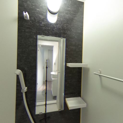 • 設備の充実(シャワー・棚・鏡・追い焚きパネル)(確度86%):シャワー、ミラー、小物棚、浴室外の給湯リモコンが確認でき、日常使いの利便性が高い。
