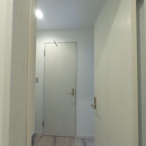 • 採光は弱めだが室内灯あり(確度70%):玄関に窓は見当たらず、天井照明で明るさを確保している。