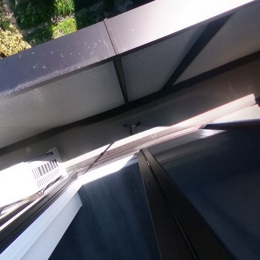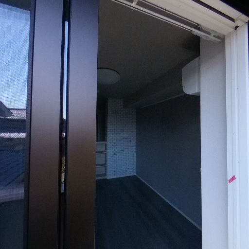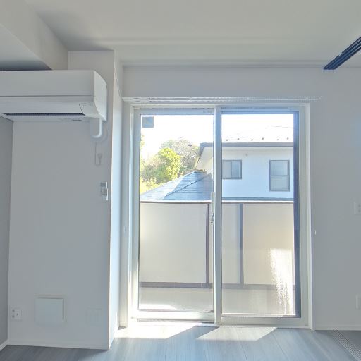室内とのつながり(確度67%):大きめの掃き出し窓で室内とバルコニーがフラットに近くつながっている。