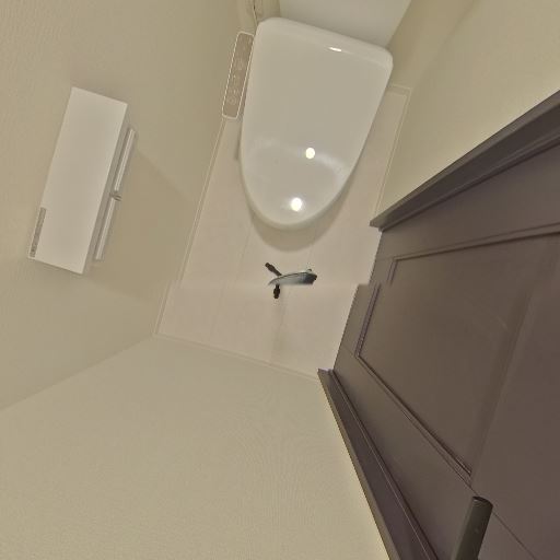 独立トイレで収納あり(確度90%):便器上部に吊戸棚があり、トイレットペーパーや掃除用品を収納できる。