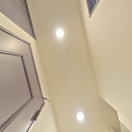 照明計画(確度82%):天井にダウンライトが2灯あり、玄関周りを十分に照らしている。