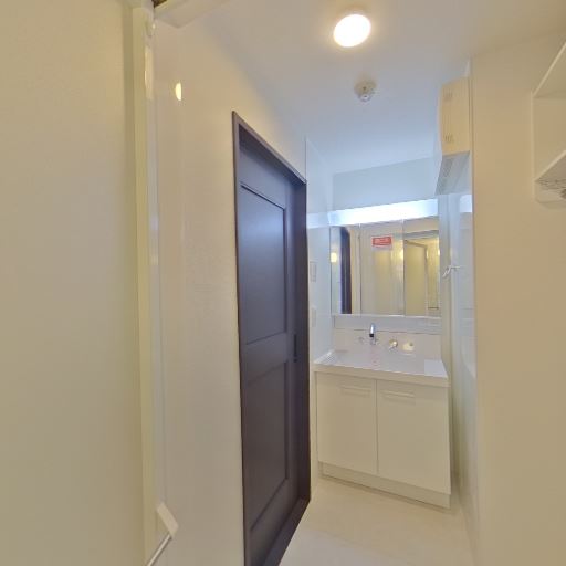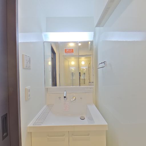浴室と洗面が近接したレイアウト(確度86%):浴室の引き戸の先に洗面台が直結している。脱衣→入浴の動線が短い。