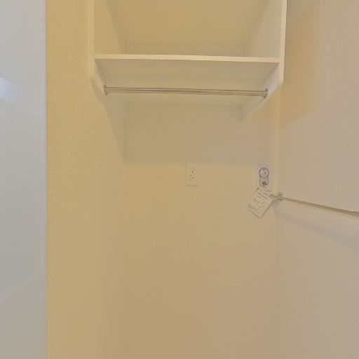 タオル収納・ハンガーパイプ付きニッチ(確度70%):壁のくぼみに棚とハンガーパイプがあり、ランドリー収納として使えそう。