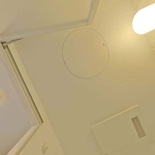 換気設備とダウンライト(確度88%):天井に換気口と埋込照明があり、明るさと換気が確保されている。