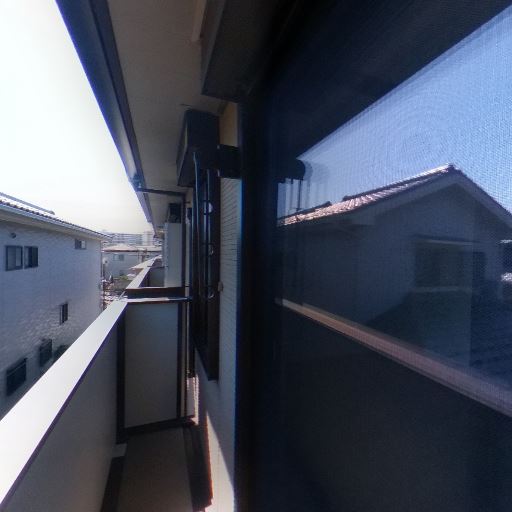 バルコニーの奥行き(確度70%):手すりからサッシまでの距離は標準的で、物干し金具も設置されている。人が通るスペースは確保。