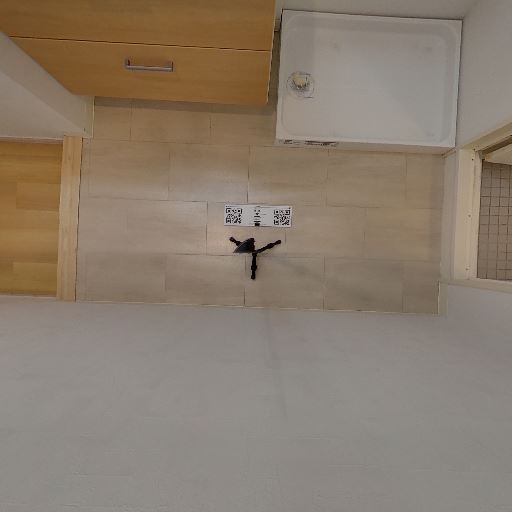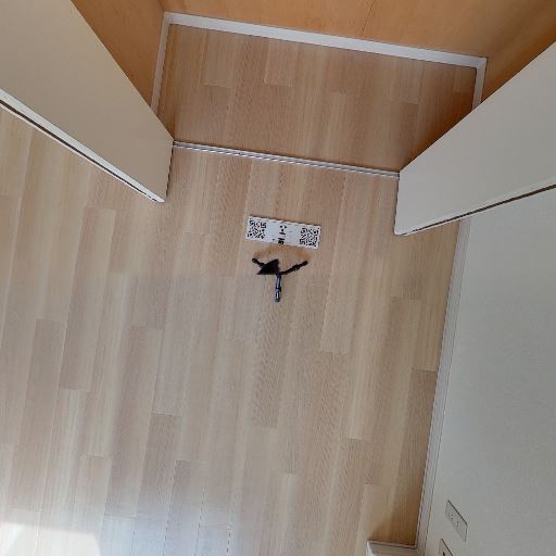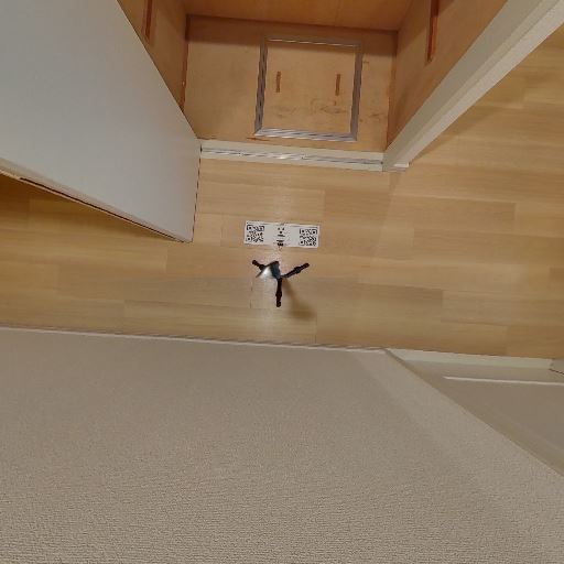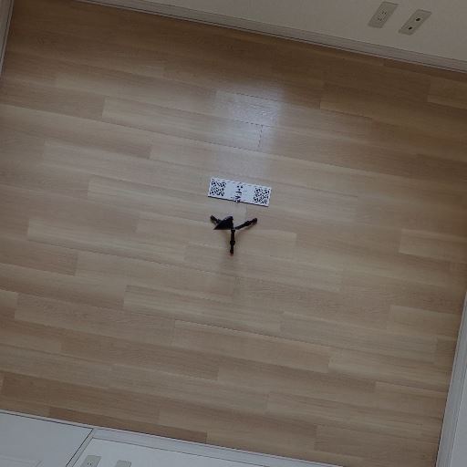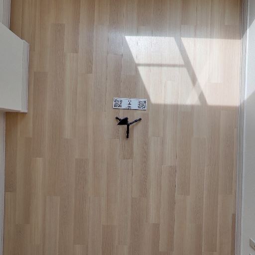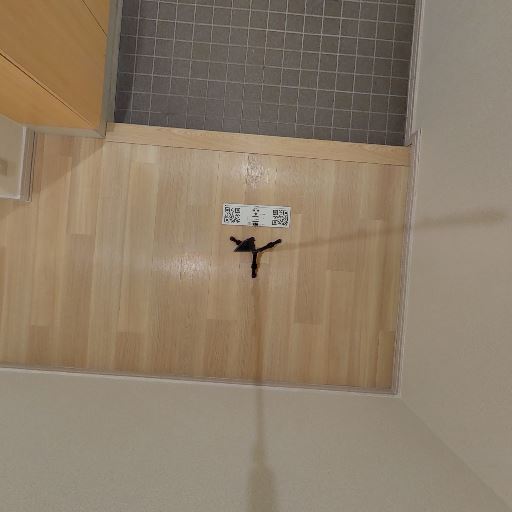 • 床の状態(確度82%):明るい木目のフローリングで、大きな傷は見当たらない。中央に撮影用のマーカーが置かれている。