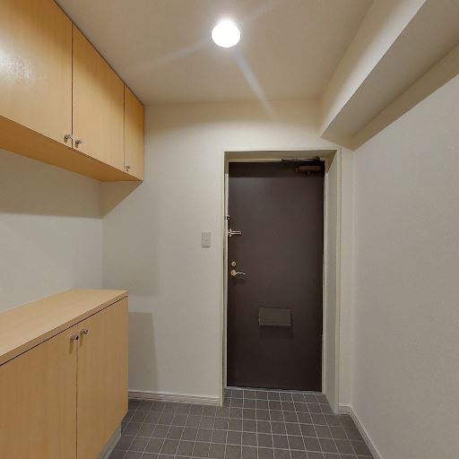 • 照明はダウンライト1灯(確度78%):天井にダウンライトが1つ確認でき、玄関としては標準的。