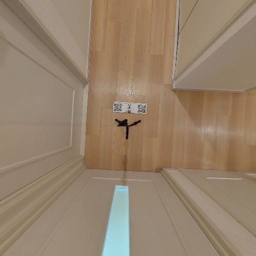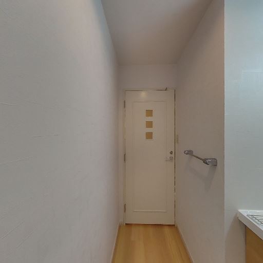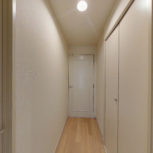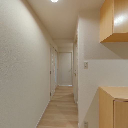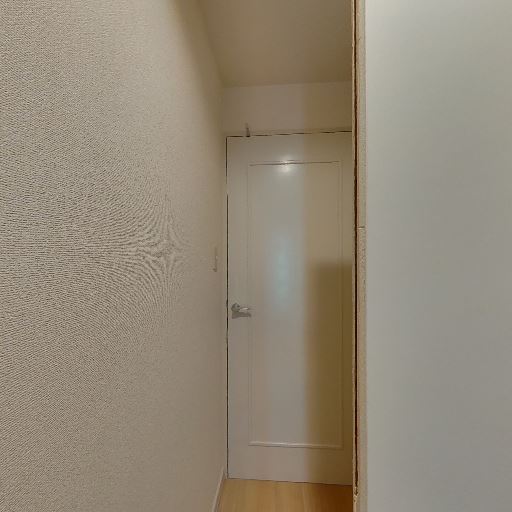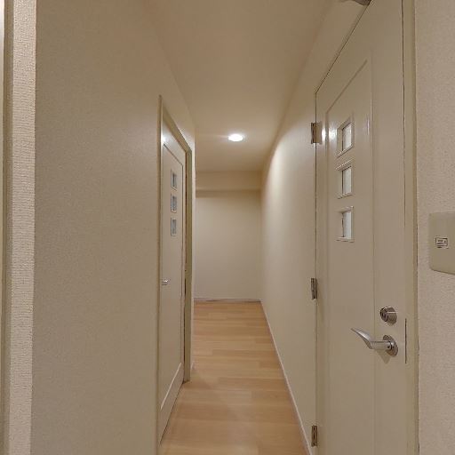 • 細長い廊下レイアウト(確度83%):幅はやや狭めで、一直線にドアが並ぶ廊下空間。奥に個室ドア、側面に収納扉と思われる引き戸がある。
