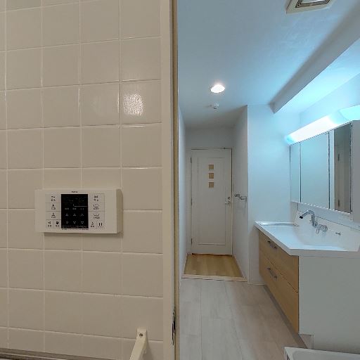 • 浴室乾燥・換気設備あり(確度86%):天井に換気扇があり、浴室外の壁に操作パネルが見える。