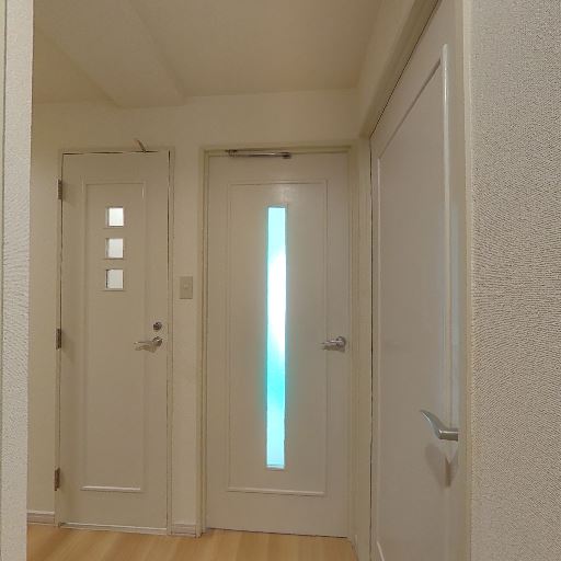 • 採光は限定的(確度76%):廊下は天井ダウンライトが主照明。室内ドアの縦スリットガラスから多少の光が入るが自然光は期待しにくい。
