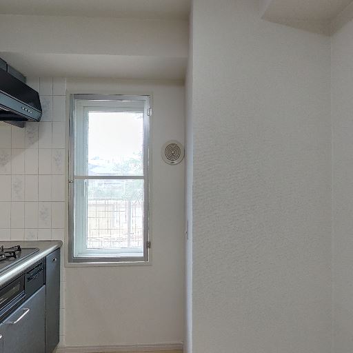 • 採光と換気(確度80%):キッチン横に縦長の窓と壁付け換気口があり、自然光が入り換気もしやすい。