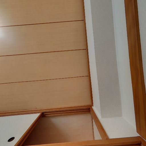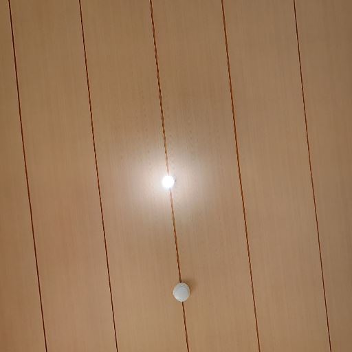 • 天井・照明(確度70%):木目調の天井で、中央付近にダウンライトとセンサーもしくは火災報知器らしき機器がある。