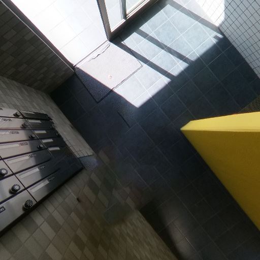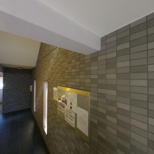 • 共用部のデザインと清潔感(確度78%):タイル張りの壁とダーク系床タイルで統一され、掲示板も整頓されている。大きな汚れや破損は見当たらない。