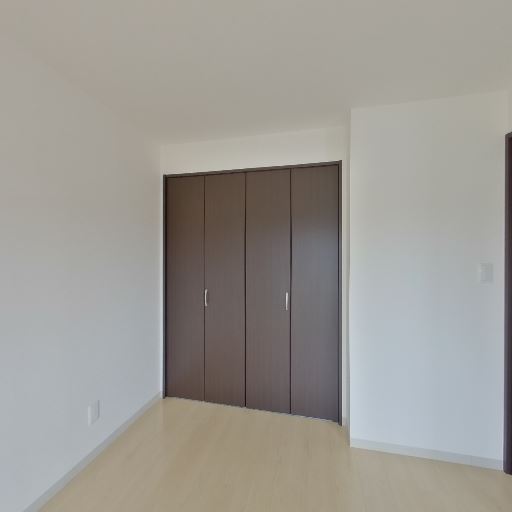 • 収納の充実(確度79%):床から天井付近まで高さのある3枚扉のクローゼットがある。