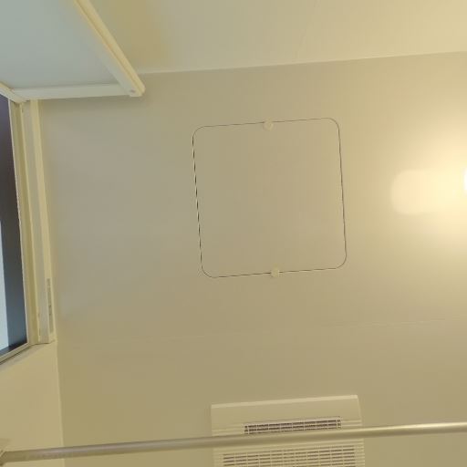 • 壁・天井の状態(確度62%):白壁と天井は概ねきれいで大きな汚れやひびは見当たらない。天井に点検口や器具跡のような丸い部材がある。