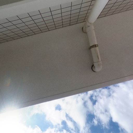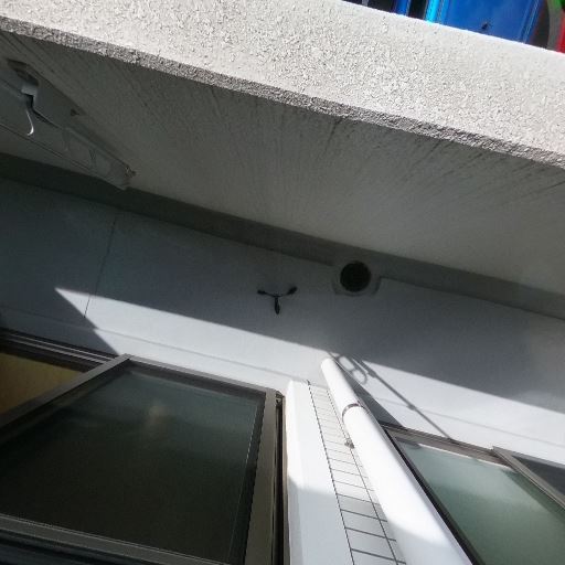 • 防雨性・庇の存在(確度70%):天井側にしっかりした庇があり、配管も天井沿いに収まっている。多少の雨でもバルコニー内側は濡れにくそう。