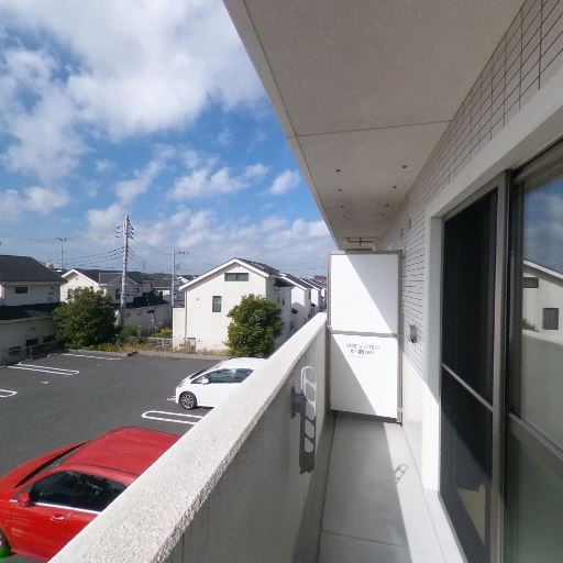 • 眺望・抜け感(確度84%):駐車場と低層住宅が広がり、正面に高い建物がなく視界が開けている。
