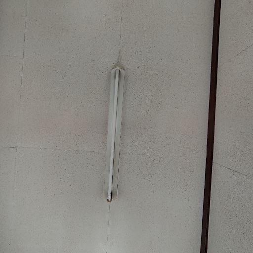照明は蛍光灯1基のみ(確度76%):天井中央に直管蛍光灯が1本。器具周りに汚れが見える。