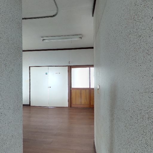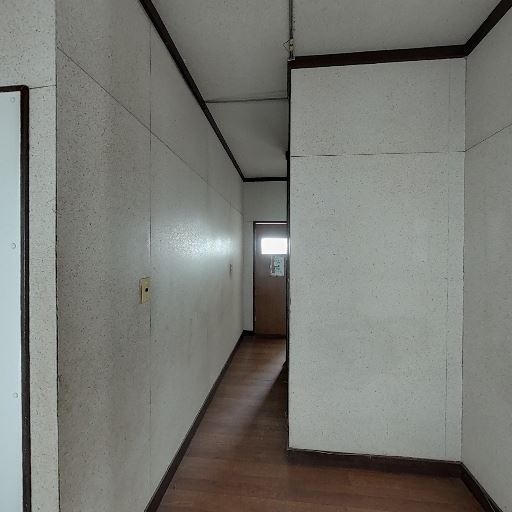 共用廊下のような細長い空間(確度78%):長い直線の通路で、個室というよりは廊下・共用部の印象。左右に扉や窓が並ぶ。
