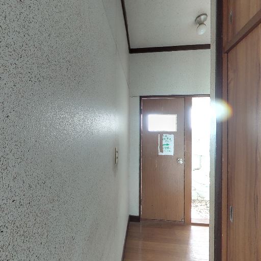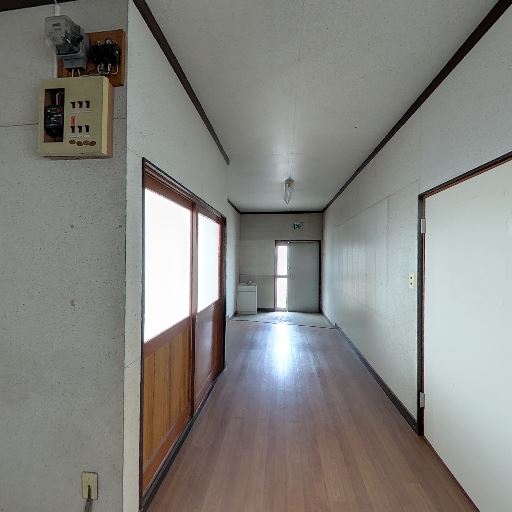 採光は限定的(確度62%):廊下側のドアに小窓があるほか、奥の部屋に障子/ガラス戸が見えるが、撮影空間自体は細い廊下で明るさは控えめ。