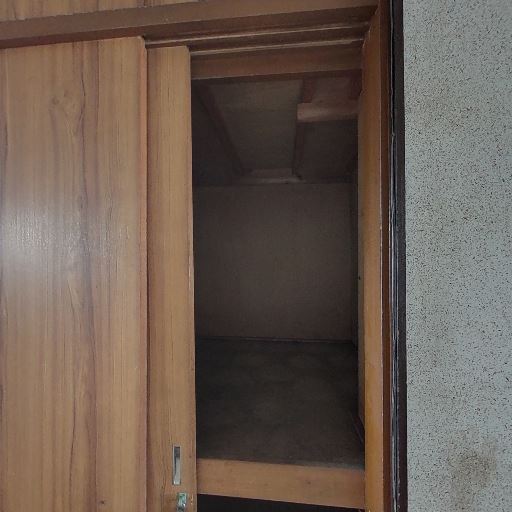 収納スペース(押入れ)の存在(確度90%):木製の引き戸の押入れがあり、上下2段で奥行きもある。
