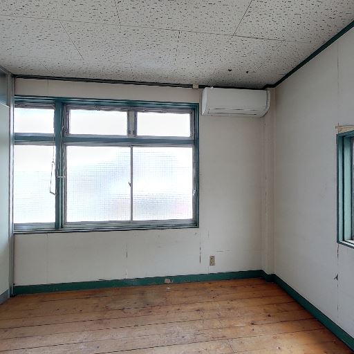エアコンの有無(確度70%):窓上に壁掛けエアコンが1台見える。動作可否は不明。