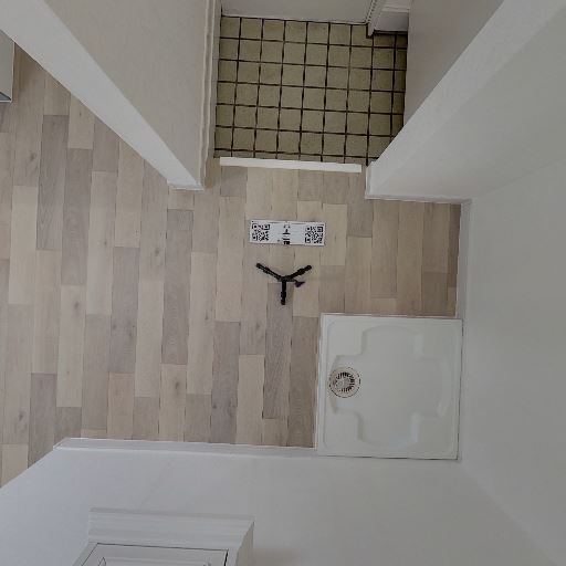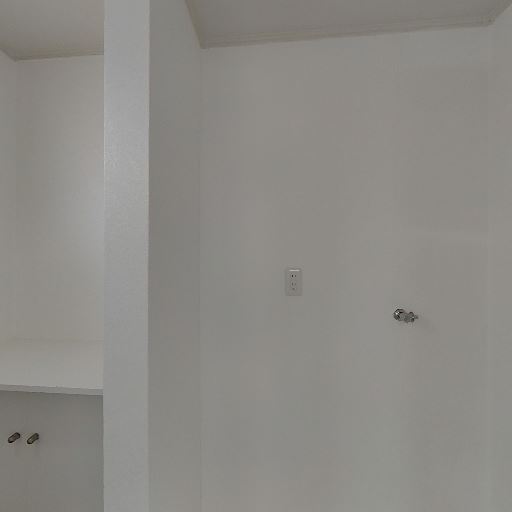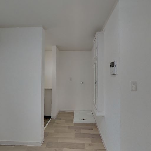 室内洗濯機置き場がある(確度96%):通路側に洗濯機置き場と思われる防水パンと給水位置が確認でき、室内で洗濯機を設置できる構成と見られる。