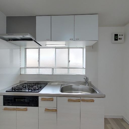 キッチン側に採光がある(確度88%):キッチン横に複数の窓があり、自然光を取り入れやすい。昼間は手元が見やすく、空間全体も明るく感じられる可能性が高い。