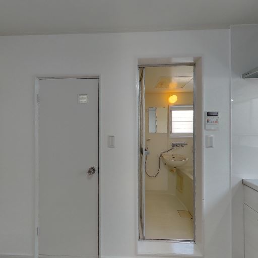 浴室リモコンがあり機能性が高そう(確度78%):壁面に操作パネルが設置されており、給湯や換気関連の操作がしやすい設備構成に見える。