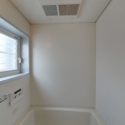 浴室に小窓があり換気しやすそう(確度92%):浴槽脇にすりガラスの小窓があり、自然換気や湿気逃しに役立つ構造に見える。