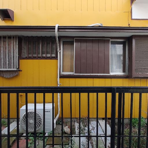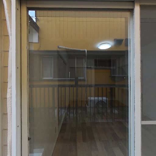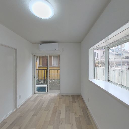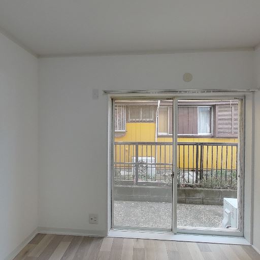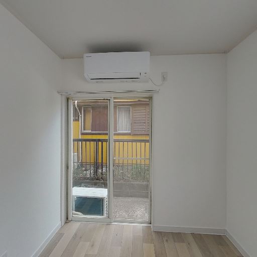 エアコンが既設されている(確度97%):掃き出し窓上部に壁掛けエアコンが設置されているのが確認できる。入居後すぐに空調を使える可能性が高い。