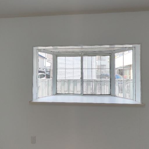 窓が2方向にあり採光が取りやすい(確度89%):掃き出し窓と出窓のような開口部が確認でき、自然光を取り込みやすい構成に見える。室内全体も明るめに見える。