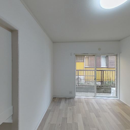 掃き出し窓があり室内は明るめ(確度84%):大きめの掃き出し窓から自然光が入っており、室内全体が白い壁と明るい床材で統一されているため、実際の広さ以上に明るく感じやすい。
