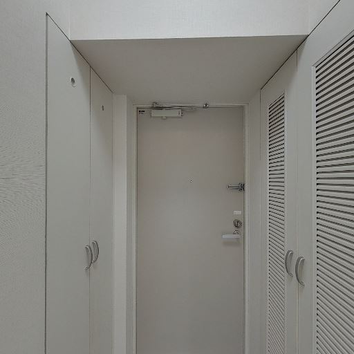 • 玄関ドアの内側(確度63%):ドアクローザー付きの玄関ドアが見える。内側はシンプルで傷や大きな汚れは目立たない。