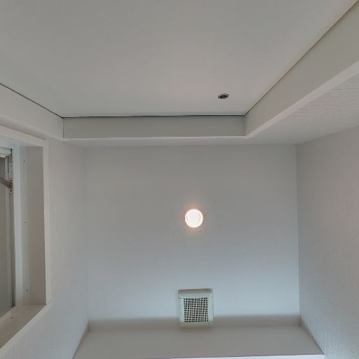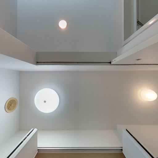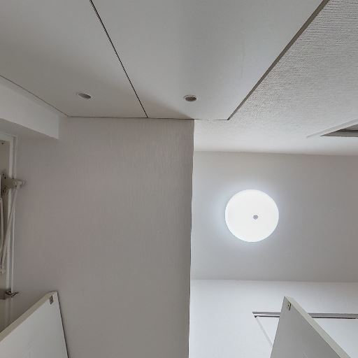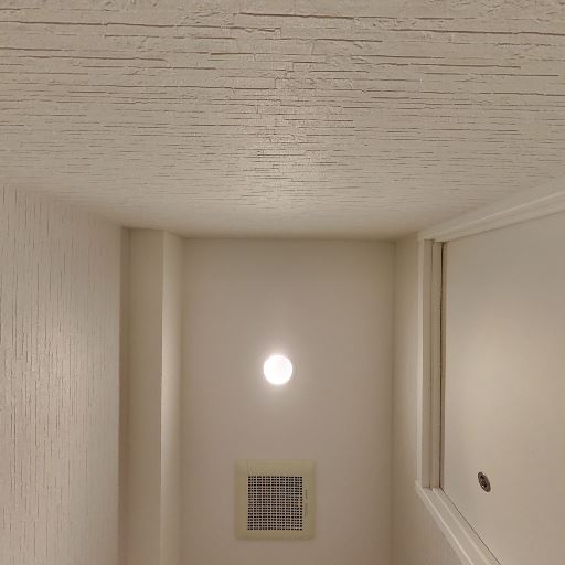 • 天井の換気口とダウンライト(確度74%):天井に丸型照明と換気グリルがある。