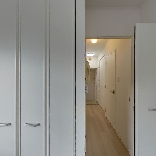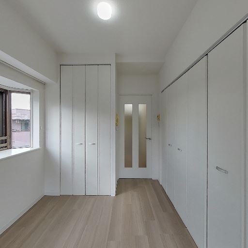 • 収納が複数箇所(確度72%):廊下側にクローゼット扉が並び、居室側にも収納の扉が見える。