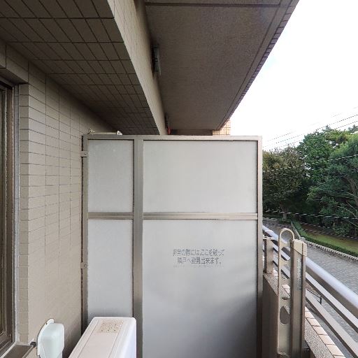 • プライバシー配慮の仕切り板あり(確度80%):隣戸との境に不透明のパーテーションがあり、視線を遮っている。
