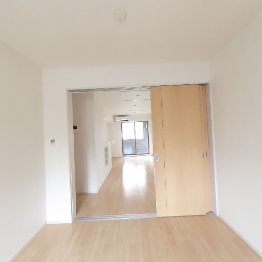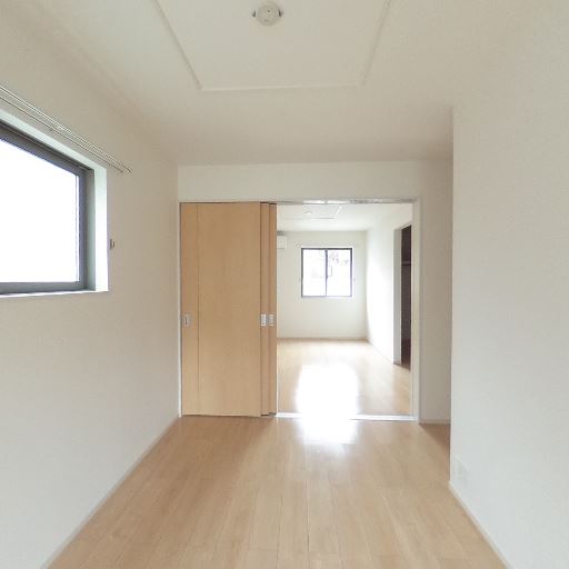 個室とリビングがスライドドアで連結(確度86%):大きめの開口部と引き戸で隣室(リビング)とつながっており、開ければ空間が一体化する。