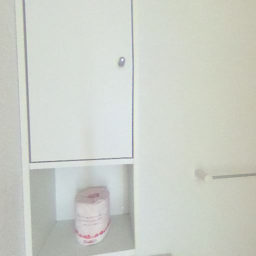 収納スペースがある(確度84%):壁面に扉付きの上部収納とオープン棚が確認できる。