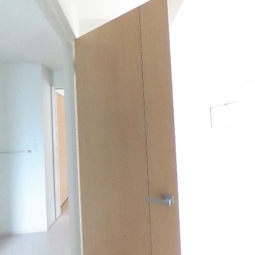 玄関収納の充実(確度70%):玄関脇にトールタイプの収納扉や上部棚が見える。コート掛けや小物収納に使えそう。