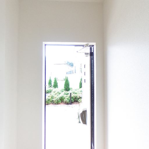 玄関の明るさ(確度78%):ドアの採光部から外光がしっかり入っており、玄関周りが明るい。