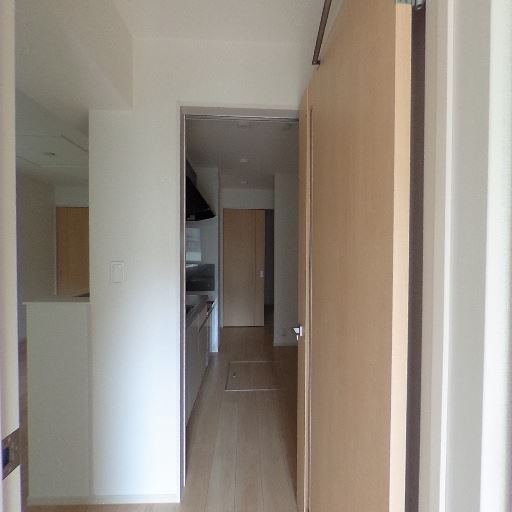 廊下からキッチンへ続く動線(確度74%):玄関から細長い廊下を抜けてキッチンが見える配置で、家事動線が一直線。