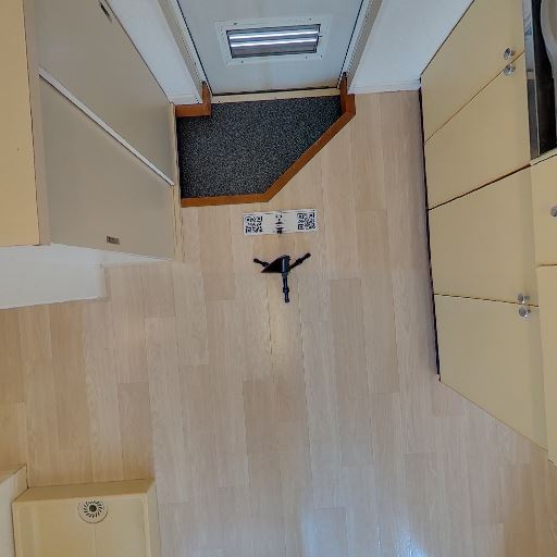 洗濯機置き場あり(確度80%):引き戸近くの床が一段下がったスペースと給水栓があり、洗濯機置場と思われる。