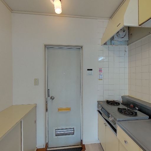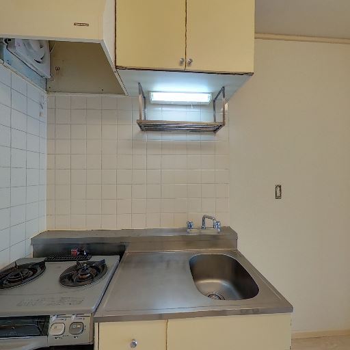 キッチンは2口コンロ(確度82%):ガスの2口コンロと換気扇が確認でき、調理性はまずまず。