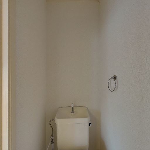 タオルリング・換気口あり(確度70%):壁にタオルリング、天井面に換気口(または換気扇取り付け口)が確認できる。